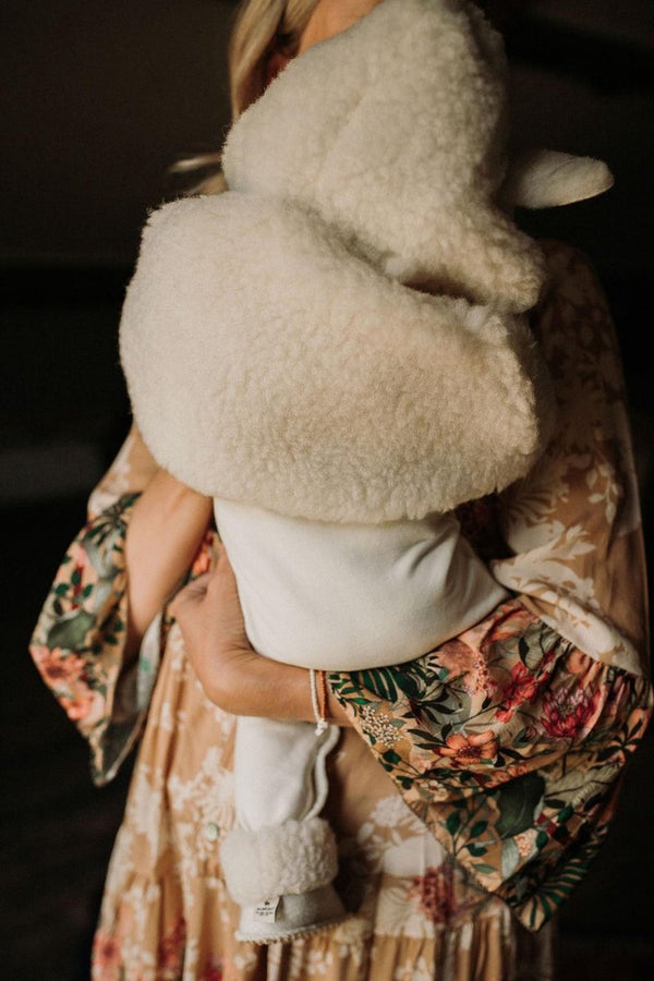 Alwero Cape Illy. Ein köstliches Wollumhang für deinen Kleinen. Cape Illy besteht aus 100% Merinowolle. Eine schöne qualitativ hochwertige Wolle, in der Ihr Kind wunderbar warm bleibt. Ideal, wenn Sie im Winter wandern oder einkaufen gehen. Zieh dieses Kap an, leg dein Kind in den Kinderwagen und er oder sie wird nicht kalt. Wolle ist ein Naturprodukt, das atmet, aber immer schön warm bleibt. Und diese Ohren machen das Cape super süß!