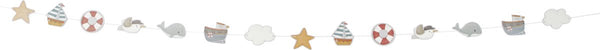 Schauen Sie sich all diese schönen Sailors Bay -Figuren an! Folgen Sie der Reihe von Segelbooten, Möwen und Walen auf diesem nautischen Pendel. Welche Abenteuer stehen vor? Dieses Pendel mit Kartonfiguren stimuliert die Fantasie Ihrer Kleinen, während Sie vor dem Schlafengehen eine Geschichte über das Leben auf See erzählen. Hängen Sie es an die Wand, entlang der Vorhänge oder an ein Bücherregal, um dem Kindergarten eine kleine Segelbucht hinzuzufügen. Kombinieren Sie mit anderen Gegenständen aus der Kollektion wie Bettwäsche, Teppich oder Umarmungen, um den Raum in das Thema Sailors Bay vollständig einzutauchen.