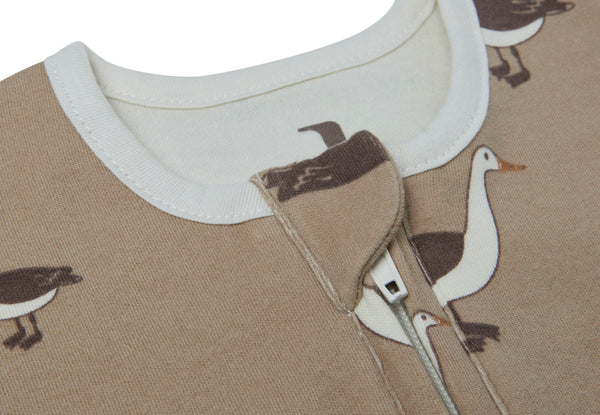Das Gänsethema ist fröhlich mit seinen niedlichen weißen Gose auf einem neutralen Hintergrund von Nougat oder Biscuit. In dem Thema finden Sie nur Schlafsäcke mit köstlichem Dehnungstrikot mit einem TOG -Wert von 0,5. Gänse passt perfekt zu Pointeelle -Decken von Jollein.