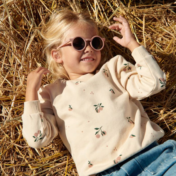 Schützen Sie die Augen Ihres Kindes vor den hellen Strahlen der Sonne mit dieser trendigen runden Kindersonnenbrille Darla senf von Liewood.