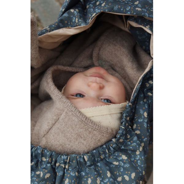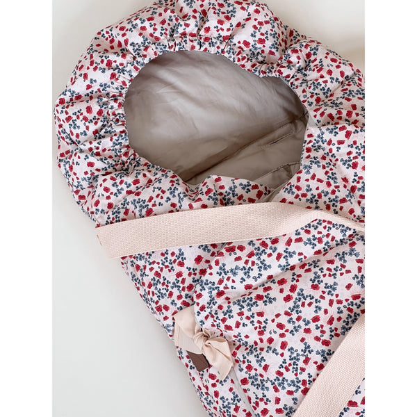Beautiful finished baby nest/sleeping bag from Konges Slojd. Ideal to take with you on vacation, for example while camping. The bottom is very comfortable due to the thickness of the material. This sleeping bag can be used for newborns up to the age of 3 years.