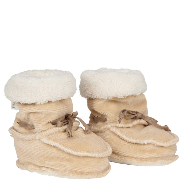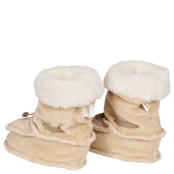 With these Koeka slippers, your baby's cuddliness rises to great heights. These one size baby slippers are easy to put on and take off, yet your baby will not kick them off easily because of the lacing around the ankle. They are nice and warm, comfortable and super soft for your baby's little feet. The detail of the lacing and the Koeka logo on the back make the slippers irresistibly sweet, making them a popular gift item as well.