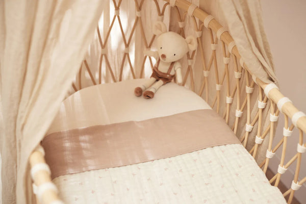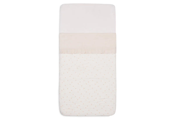 Upgrade your little one's crib or crib bed with our linen-look slub fabric sheet. Available in stylish colors Ivory and Nougat, or choose a charming harvest print. Create a cozy and trendy atmosphere in the nursery by combining it with a knitted blanket from Jollein.