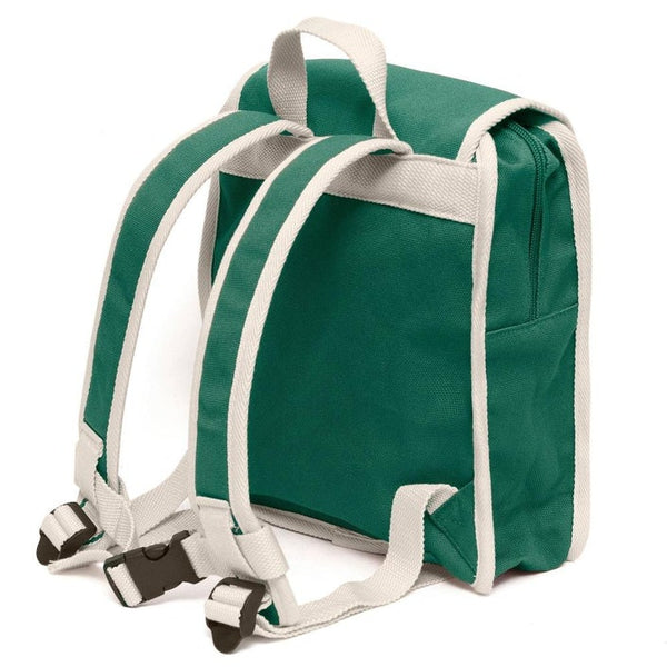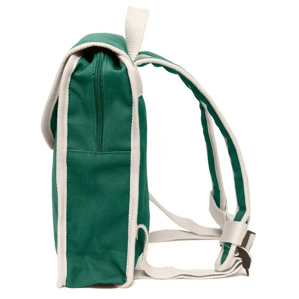 Petit Monkey children's backpack made of recycled cotton. The durable backpack is suitable for children ages 4 to 8. The recycled cotton backpack has contrasting off white binding.