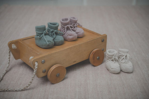 With these knitted Koeka slippers you will complete the outfit of your little one. These one size baby slippers are easy to put on and take off, yet your baby won't kick them off easily. They are comfortable and super soft for the little feet of your baby. The detail of the closure and the Koeka logo on the back make the slippers irresistibly sweet which also makes them a popular gift item. The slippers are available in three different colors.