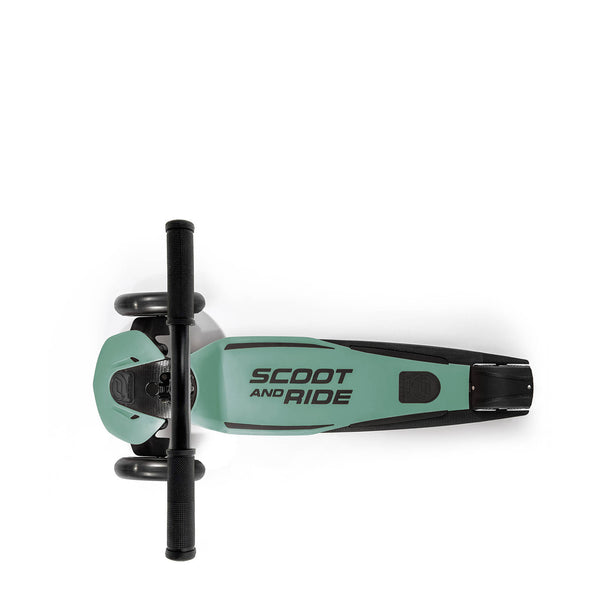 This scooter Highwaykick 5 from Scoot and ride is designed especially for children from 5 years of age with a height of 118 - 180 centimeters. It is a smart scooter with two large wheels at the front and a small wheel at the back with a good brake. The wheels contain LED lights that let your child stand out nicely in the evening. The scooter has a wide platform to stand on which makes it very stable. The handlebars are adjustable which means the scooter can be used for years and there are many clever details on the scooter. The wheels are made of hard rubber.