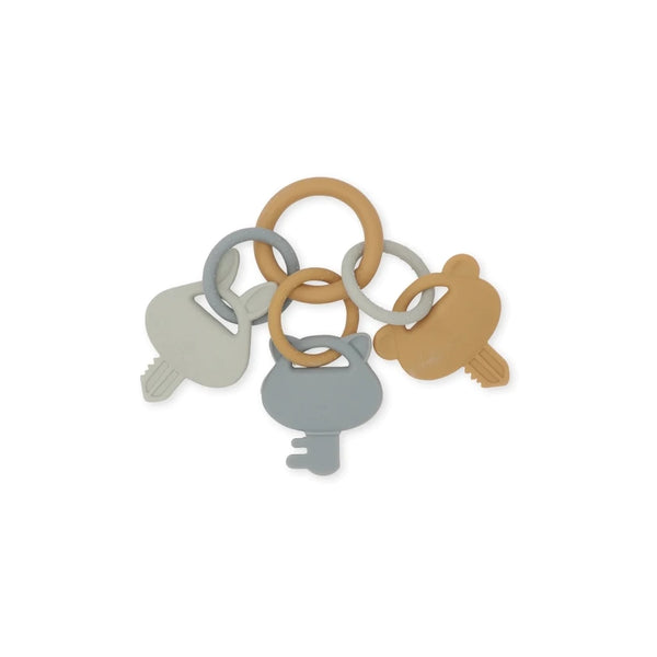 How cute are these silicone teething rings shaped like keys from Konges Slojd. These silicone KI Keys are ideal to ease the pain when your baby's first teeth come through. In addition, they are also just fun to play with.