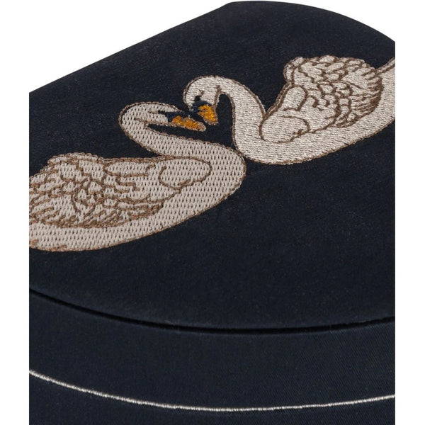 Belle boîte à musique de Petit Monkey. En laissant jouer la musique, la fée tourne sur son axe et l'on entend l'air du "Lac des Cygnes". Sur l'extérieur de la boîte à bijoux ovale, on voit la fée sur sa balançoire dans un lac plein de nénuphars et de grenouilles, illustré par Rebecca Jones. Ouvrez le couvercle et la fée émerge sur un nénuphar.