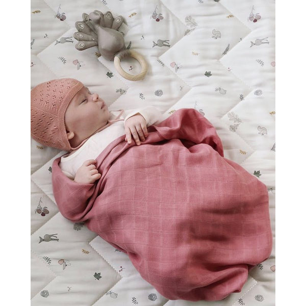 Vous pouvez utiliser le tissu comme une serviette, un lange, un drap ou une couverture dans le berceau ou le lit, pendant l'allaitement, sur le matelas à langer, dans le maxi cosi et le siège auto, dans le landau et plus encore...