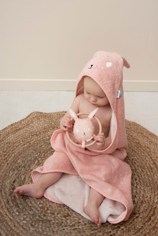 Tous les produits essentiels pour bébé de cette nouvelle collection sont fabriqués dans un tissu éponge merveilleusement doux. Le plaisir des animaux se poursuit également dans la salle de bains ! Après un bain rafraîchissant ou une bonne douche, nos animaux préférés sont prêts à faire des câlins à votre enfant ! Disponible en poncho, en cape de bain (deux tailles) et en peignoir (trois tailles). Ces produits étant en contact étroit avec la peau des bébés, ils sont fabriqués à 100 % en coton biologique de haute qualité.