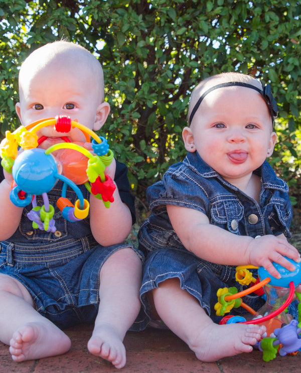 Les bébés apprennent en jouant et la balle Play & Learn Ball est conçue pour encourager cela. Cette balle amusante est pleine de plaisir à rouler. Elle comporte un cylindre en plastique unique avec des billes qui s'entrechoquent à l'intérieur, ce qui ne manquera pas d'amuser bébé et de développer son ouïe. Les différentes surfaces et les couleurs vives activent les sens de bébé. Il y a également un miroir qui aide bébé à comprendre les reflets et à développer sa conscience de soi.