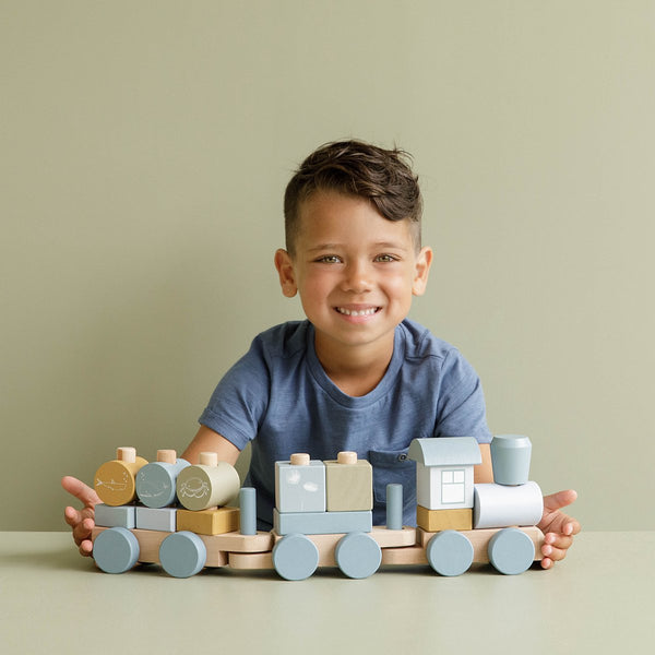 Cet adorable train en bois de Little Dutch présente des motifs et des chiffres amusants. Grâce aux blocs de différentes formes et aux couleurs fraîches et modernes, vous pouvez créer des wagons différents à tout moment. Le train se compose de 17 pièces au total et mesure ± 45 cm de long. Ce jouet reste amusant à manipuler et constitue également un bel accessoire pour le bébé ou la chambre d'enfant. A partir de 12 mois.