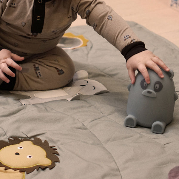 Veilleuse en silicone souple de Nuuroo pour les enfants. Donnez à vos enfants un sentiment de sécurité pendant la nuit en allumant notre lampe en silicone Ella. Fabriquée à 100 % en silicone souple, cette lampe porte le marquage CE et se recharge via un connecteur USB. La lampe a la forme d'un panda et deviendra rapidement le compagnon lumineux préféré des enfants.