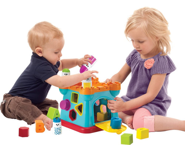 Laissez votre enfant découvrir le plaisir de ce jouet coloré en forme de château à trier ! Les murs du château sont décorés de découpes représentant différentes formes, chiffres et lettres, ce qui permet d'enseigner la reconnaissance des formes et de développer la motricité. Le château de tri est doté d'accessoires amusants tels qu'un bouton qui émet un son, un rouleau coloré et des cloches qui se déplacent d'un côté à l'autre. Votre enfant peut compter les chiffres en plaçant les briques dans les bonnes cases, et empiler les chiffres au sommet du château pour relever un nouveau défi. Retournez le château pour vous amuser encore plus !