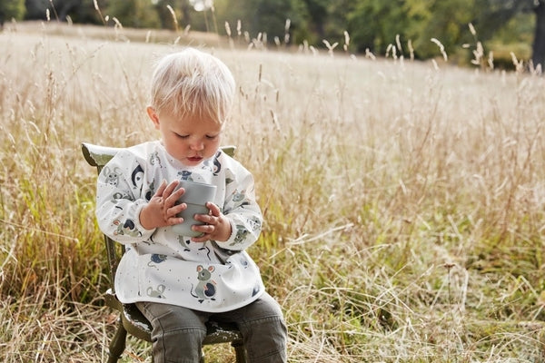 Un bavoir très pratique pour tous ceux qui aiment faire autre chose que de la lessive. Les manches longues offrent une protection totale, aussi bien pendant les repas que pendant les travaux manuels et les jeux créatifs. Après utilisation, il suffit de rincer ou d'essuyer le bavoir. La matière certifiée Öko-tex n'absorbe pratiquement pas d'humidité et sèche rapidement à l'air libre. Facile et rapide à enfiler grâce au velcro souple au niveau du cou.
