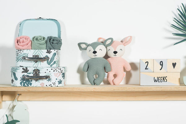 Les bébés ont envie de faire des câlins toute la journée. Ils se sentent ainsi en sécurité. Ce joyeux petit cerf est fabriqué dans un tissu doux et tricoté et constitue également un cadeau de maternité idéal.