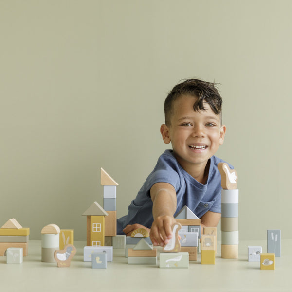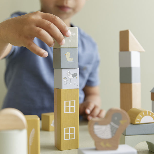 Deze houten blokken in ton zijn onmisbaar. In de ton zitten maar liefst 50 houten blokjes met mooie prints zoals Little Goose en zijn vriendjes op het platteland. Stapel de verschillende blokjes om de leukste figuren of torens te bouwen. De blokken staan garant voor heel veel bouwplezier en kunnen makkelijk opgeborgen worden in de ton!