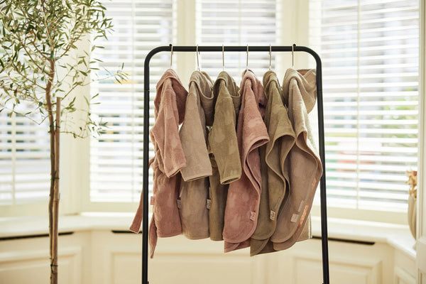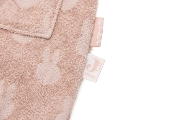 Het badjasje heeft een handig drukknoopje om hem dicht te houden bij het dragen, elastiek in het rugpand voor de perfecte pasvorm en de ceintuur zit aan het badjasje vast zodat je hem niet kan verliezen. Het badjasje is effen van kleur en in de badstof is Nijntje ingeweven. Verkrijgbaar in olive green, nougat en wild rose.