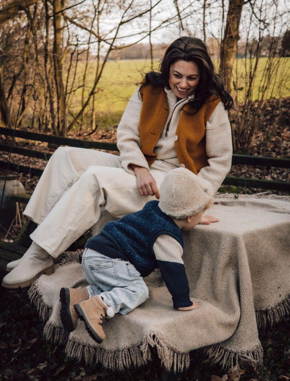 Wil je een stijlvol én praktisch hesje voor je kleintje dat het hele jaar gedragen kan worden? Bij Keekabuu vind je de Alwero wollen bodywarmer! Deze schattige bodywarmer met teddy-look is gemaakt van 100% wol, wat heerlijk ventileert en zorgt dat je kindje het nooit te warm krijgt. De prachtige houtje-touwtje sluiting maakt het makkelijk aan- en uit te trekken, terwijl het een unieke touch aan iedere outfit toevoegt.