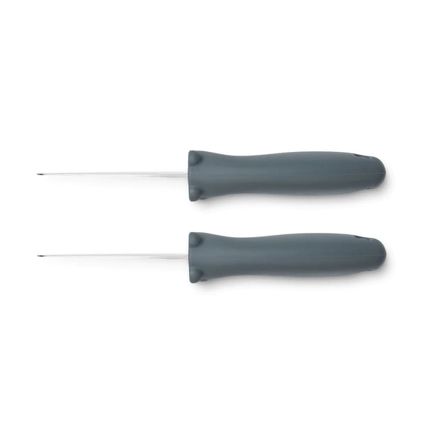 Kindvriendelijke messen zijn geweldige hulpmiddelen om kleintjes zelfvertrouwen in de keuken bij te brengen en hen aan te moedigen deel te nemen aan de maaltijd bereiding. De Perry Cutting Knife Set bestaat uit twee veilige messen die echt snijden, gemaakt van 100% siliconen en roestvrij staal.