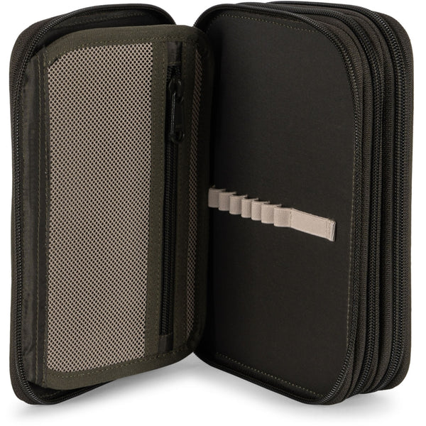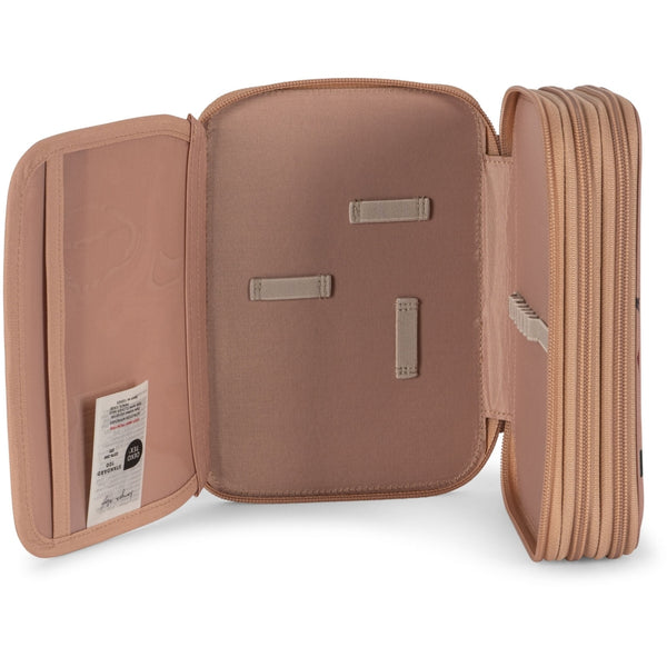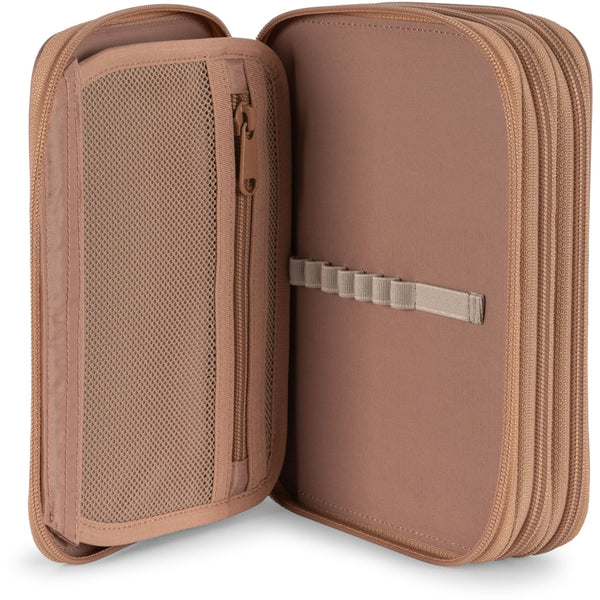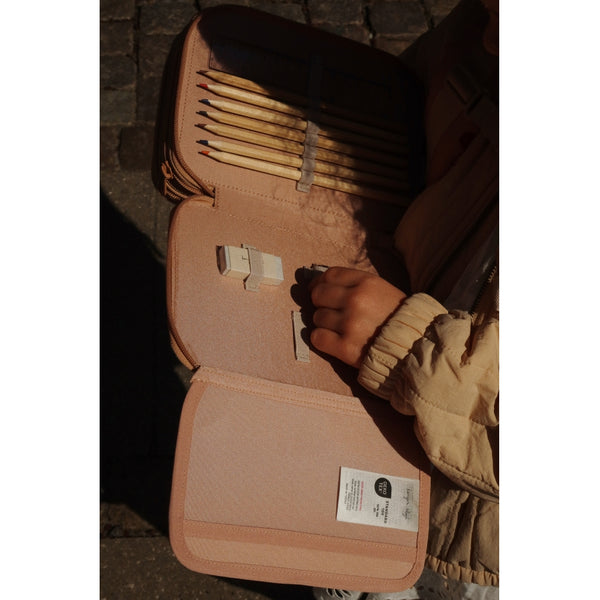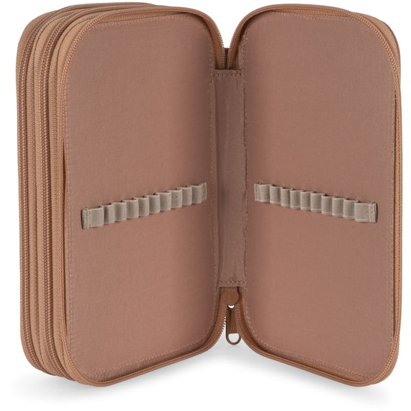 Klassisches Federmäppchen mit drei separaten Fächern für Stifte, Marker, Radiergummi und Lineal. Ausgestattet mit einer zusätzlichen Innentasche mit Reißverschluss.