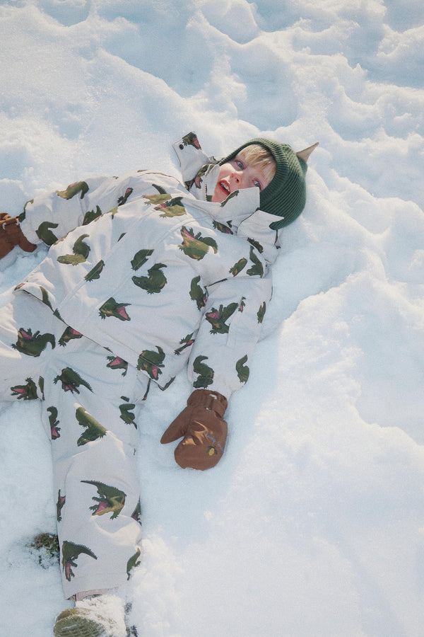 Die Jacke hat eine abnehmbare Kapuze, eine verstellbare Taille und einen Schneefang im Inneren, damit Ihr Kind warm und trocken bleibt. Darüber hinaus bieten Sturmmanschetten und versiegelte Nähte zusätzlichen Schutz vor den Elementen. Dank der Innengurte kann die Jacke als Rucksack getragen werden, wenn es wärmer wird.