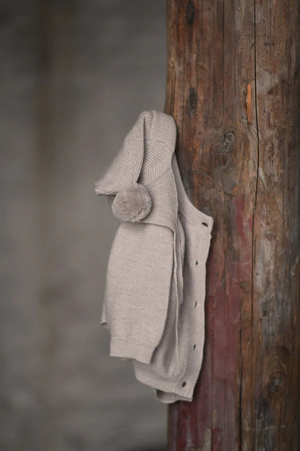 Diese weiche Strickjacke besteht aus 100% reiner Merinowolle mit hoher Qualität. Die Strickjacke ist perfekt für kalte Zeiten und erwärmt das Baby gut. Es gibt viele süße Details, schöne Mutter -Pearl und eine kleine Tasche vorne. Das Produkt kann mit einem weichen Wollprogramm gewaschen werden.